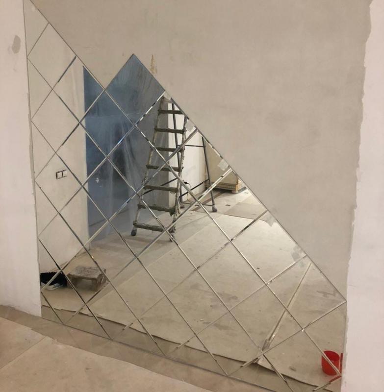 Использована зеркальная серебряная плитка треугольной формы.